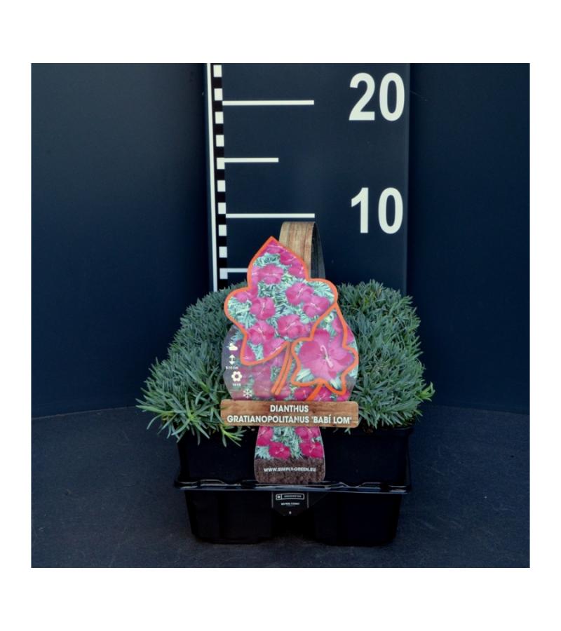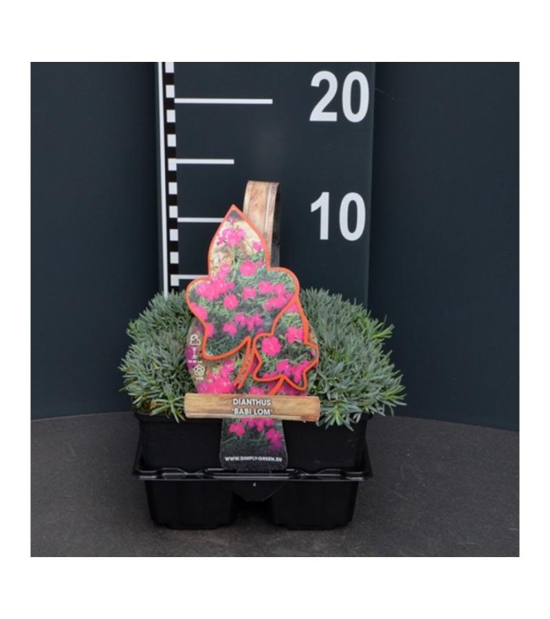 De Babi Lom is een laagblijvende steenanjer. De steenanjer groeit in grijsgroene pollen. Deze dichtbegroeide pollen zijn in juni en juli rijkelijk bezaaid met opvallende felroze bloemetjes. De steenanjer is een bodembedekkende vaste plant die bijzonder goed tot zijn recht komt in rotstuinen. Maar ook daarbuiten is het een dankbare plant die fraaie kussentjes vormt onder uw hoge beplanting.