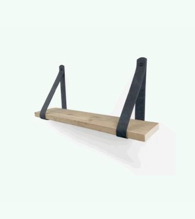 Steigerhout wandplank gebruikt 100 x 20 cm inclusief leren riemen antraciet