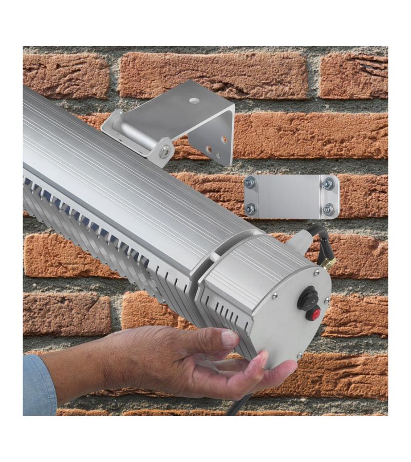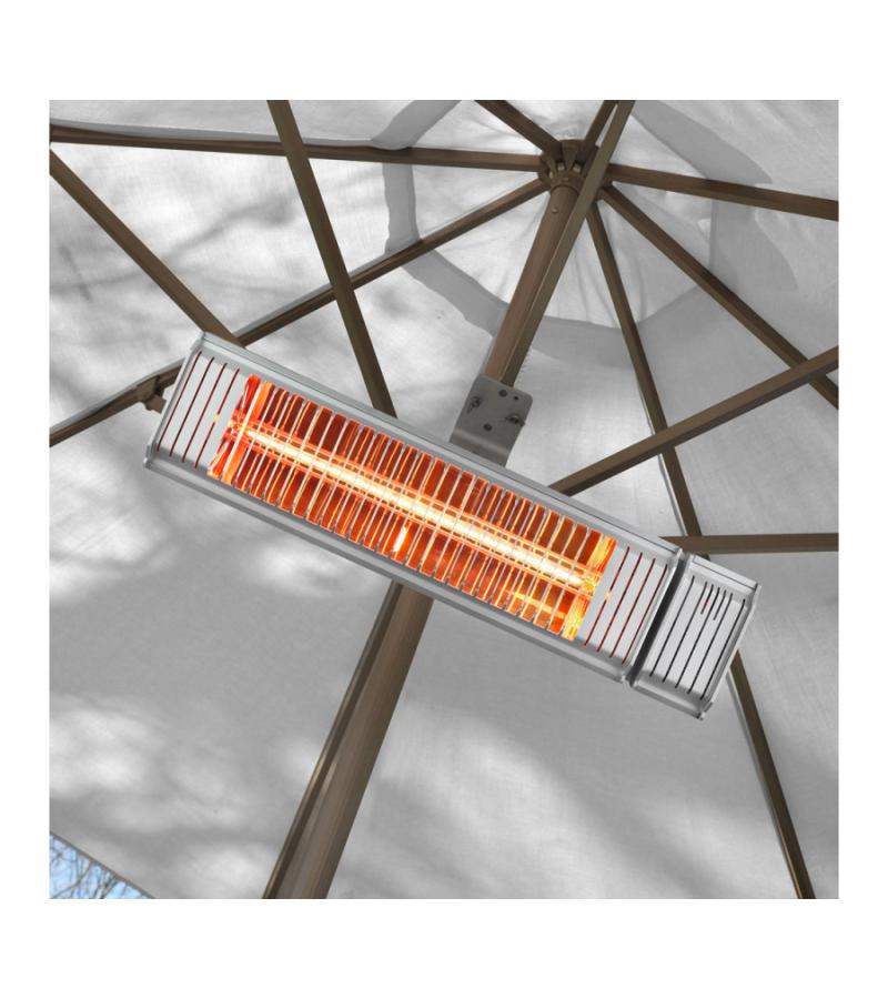 Dankzij de infraroodstraling van de Golden 2000 Amber Smart wordt in eerste instantie niet de lucht in de omgeving opgewarmd, maar juist de personen die in het bereik van de lamp zitten. Binnen no time heeft u het heerlijk warm! De terrasverwarmer is voorzien van een speciale Golden Amber ULG lamp, die 90% minder licht produceert. De Golden Amber UCL lamp verspreidt veel warmte en heeft een natuurlijke, warme, zachtgele gloed. De terrasverwarmer is verticaal 100º draaibaar, zo kunt u hem in de juiste hoek plaatsen en de warmte gericht afstemmen. De terrasverwarmer kan een oppervlakte van maximaal 22m² opwarmen en is volledig stof- en spuitwaterdicht waardoor u hem het hele jaar door buiten kunt laten hangen.