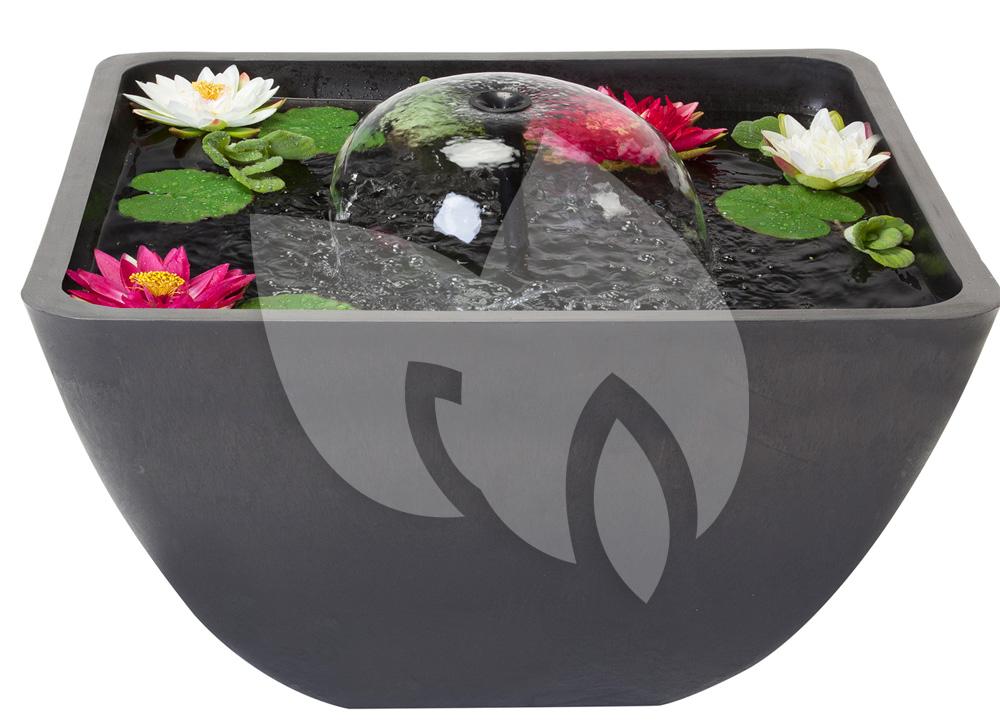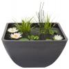 De Fountain Pond is gemaakt van licht materiaal, polystone, waardoor u de vijver moeiteloos kunt verplaatsen. De terrasvijver wordt geleverd met fonteinpomp en plantmand waarmee u de vijver kunt vullen. Een aanrader: moerasplanten maken de terrasvijver echt tot een sfeervol element in uw tuin of huis! Voor het houden van helder en algenvrij water zijn zuurstofplanten een goede optie. De terrasvijver is ook beschikbaar in een groter formaat en in een ronde uitvoering.