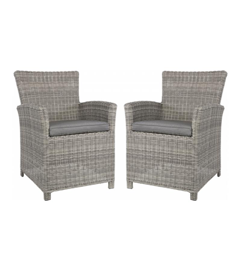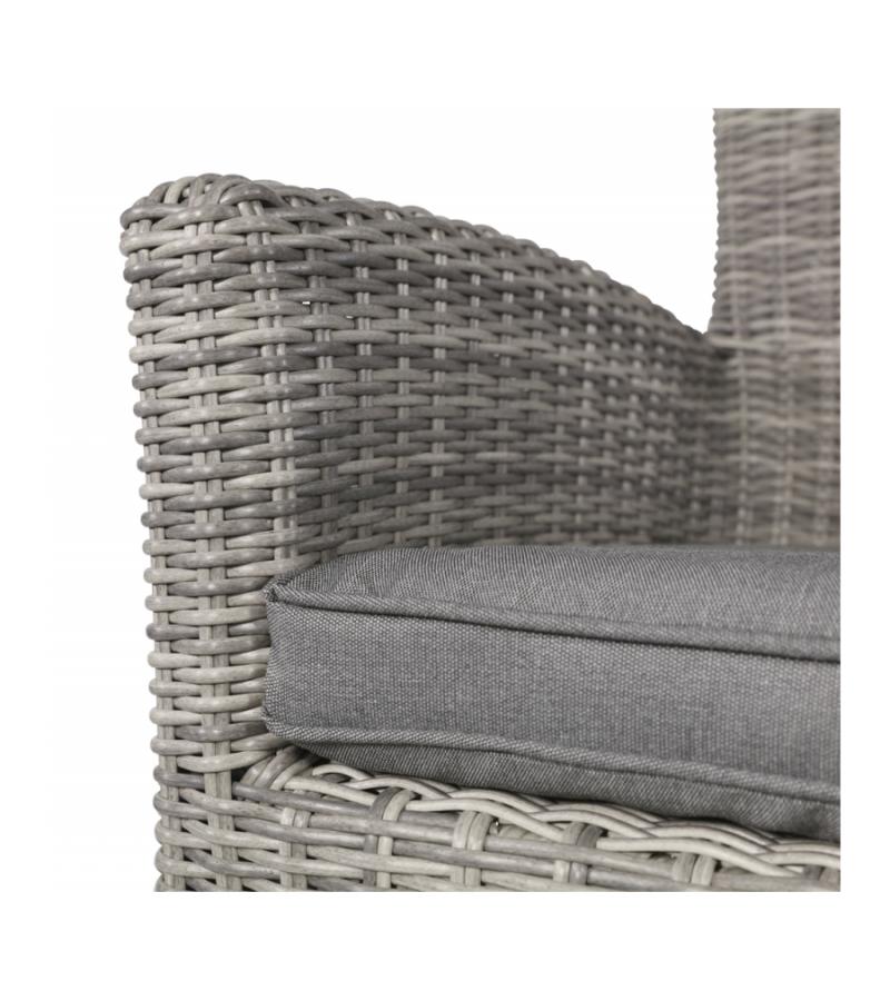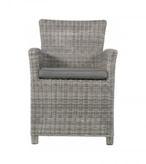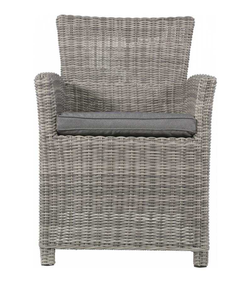 Deze vergrijsde tuinstoel is uitgevoerd in het hoogwaardige wicker. Wicker is een onderhoudsarme kunststof dat veelal gebruikt wordt voor tuinmeubelen. Een vochtig doekje zorgt voor een schoon meubel waardoor u snel van het aangename weer kunt gaan genieten. De tuinstoel is uitgevoerd met zitkussen voor extra zitcomfort. De stoel is te combineren met een tuintafel naar eigen wens, zo kunt u precies aanschaffen wat naar uw wens is, rekening houdend met budget, grootte en kleur!