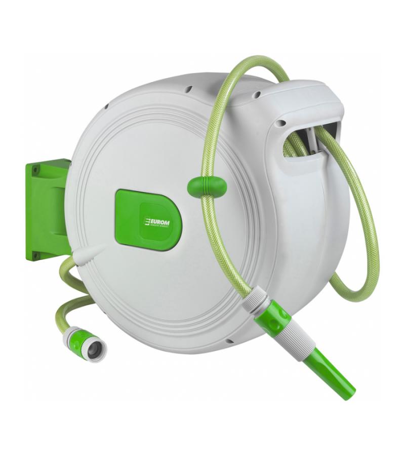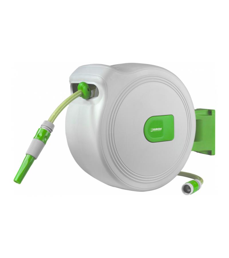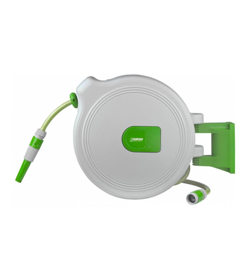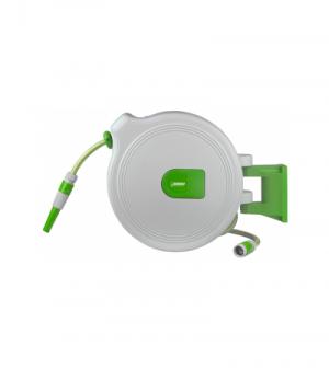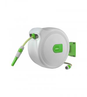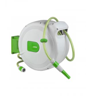 De slanghaspel is gemaakt van hoogwaardige materialen waardoor hij een lange levensduur heeft. Daarnaast is de slanghaspel uitgevoerd met een stop-waar-u-wilt-systeem waardoor u de slang tot iedere gewenste lengte kan afrollen en vergrendelen. Na gebruik rolt de slang zich weer automatisch op door het automatic-safe-return-systeem, dit systeem zorgt ervoor dat de slang rustig terugrolt zodat het rondslingeren van het uiteinde van de slang voorkomen wordt. Met de bijgeleverde montagesteun kunt u de slanghaspel aan de muur bevestigen, ten opzichte van de muur kan de slanghaspel 180 ° worden gedraaid. De slang in de haspel heeft een lengte van 30 meter.