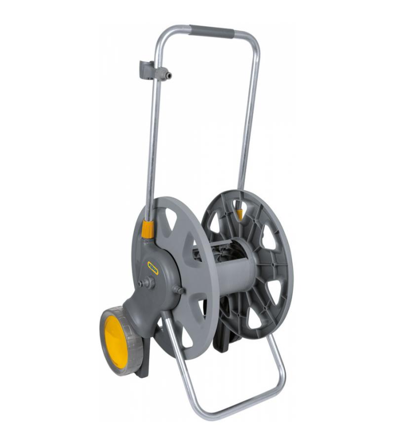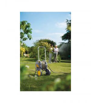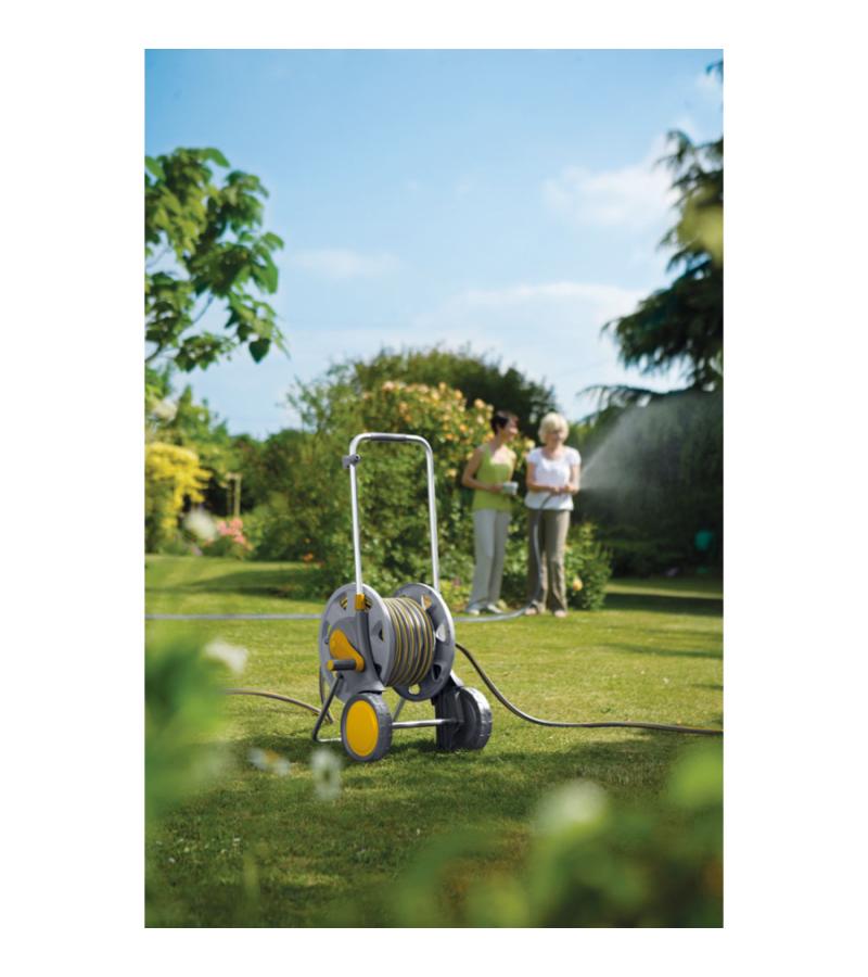 Een lange tuinslang kan nog wel eens onhandelbaar zijn en lastig op te rollen. Deze tuinslanghaspel helpt u daarmee. De wagen is extra breed en hoog waardoor de wagen erg stabiel is. De stabiliteit wordt tevens vergroot door de standaard die ervoor zorgt dat de wielen vrij van de grond komen zodra de haspel op zijn plek is gezet. De brede trommel en het lage handvat zorgen ervoor dat het opdraaien gemakkelijker gaat. De soft handgreep zorgt voor een goede grip en comfort tijdens het gebruik van de tuinslanghaspel. Aan het handvat is tevens een clip bevestigd waar u de tuinspuit aan kunt ophangen. Uw tuinslang wordt dus drupvrij en makkelijk opgeborgen.
