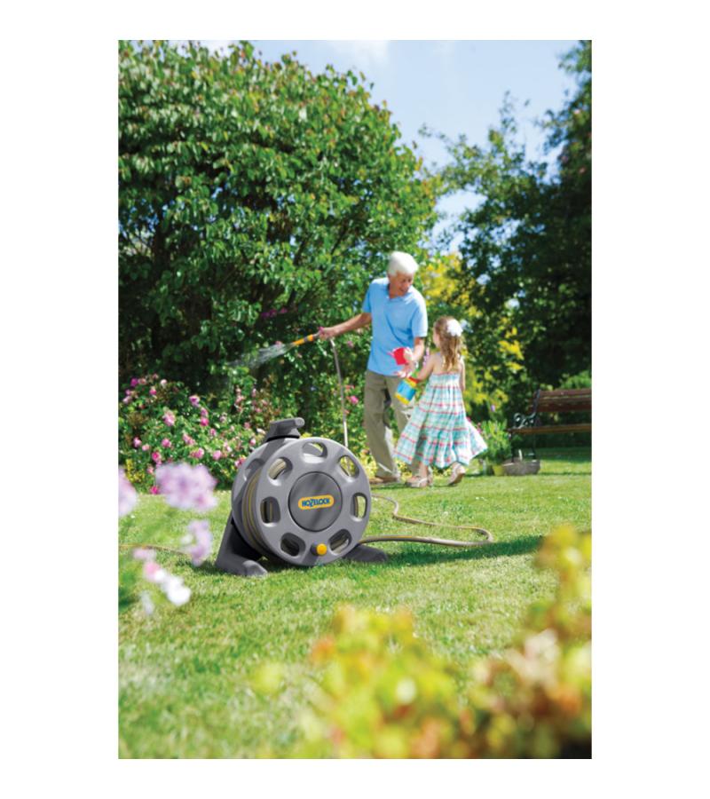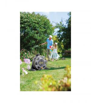 Deze haspel verplaatst u eenvoudig door hem op te tillen aan de handgreep. Ideaal in gebruik wanneer u even de auto wil wassen voor uw garage. Na gebruik rolt u de slang weer op en kunt u de draagbare tuinslanghaspel weer eenvoudig opbergen. De tuinslanghaspel biedt plaats aan een slang tot 30m met een diameter van 12,5mm. Deze praktische kunststof tuinslanghaspel zorgt ervoor dat uw tuinslang netjes opgeborgen wordt waardoor uw tuinslang veel langer mee gaat en u uw werk makkelijker kunt doen.