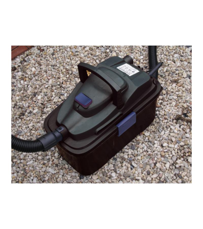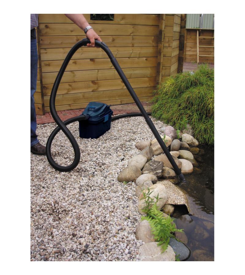De VacuProCleaner Compact is een multifunctionele zuiger met vele verschillende toepassingsmogelijkheden en uitgebreide accessoires. De zuiger is gemakkelijk in gebruik en levert dankzij zijn stevige zuigkracht perfecte prestaties op. Met een vermogen van 1000 Watt verwijdert de VacuProCleaner op een comfortabele en eenvoudige manier algen, slib, verwelkte bladeren en ander afval uit het water. Naast het schoonmaken van uw tuinvijver of bassin kunt u ook nat reinigen of droog vuil opzuigen op stenen vloeren en vloerkleden. Afhankelijk van de toepassing kunt u kiezen tussen een handmatige of automatische bediening. Bij de automatische bediening wordt na 12 seconden het vervuild water automatisch afgevoerd waarna de reinigingscyclus weer na 30 seconden wordt herstart. De tank heeft een capaciteit van 10 liter en is voorzien van een filterblok voor het filteren van het afval. De VacuProCleaner is dankzij de wieltjes onder de compacte container makkelijk te verplaatsen en beschikt door een 4 meter lange zuigslang over heel veel bewegingsruimte.