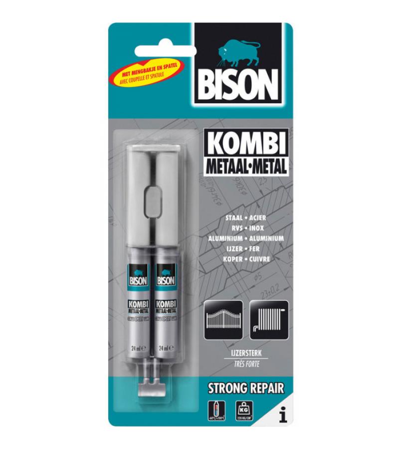 IJzersterke, metaalkleurige, 2-componenten epoxylijm. De lijm is zeer geschikt voor ijzersterke reparaties aan metaal voorwerpen. De lijm is bestand tegen extreme omstandigheden zoals krachten, trillingen, water en zware belasting. Verder ook geschikt voor het dichten van een gaatje in de radiator of voor het lijmen van metalen onderling of in combinatie met andere materialen.