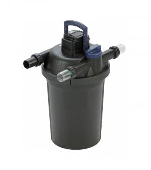 Met de FiltoClear is een nieuwe generatie drukfilters ontwikkeld die met betrekking tot filtereigenschappen en bedieningscomfort ongeëvenaard zijn. De FiltoClear 16000 drukfilter is dan ook een echt multitalent. Het drukfilter beschikt over twee unieke reinigingsfuncties die u eenvoudig door middel van de draaischakelaar op het filter kunt inschakelen. De stand ''filteren'' zorgt ervoor dat zweefalgen en ziektekiemen door het UVC-voorzuiveringsapparaat worden verwijderd. Het water wordt vervolgens gezuiverd van schadelijke stoffen door de filterelementen. Met de stand ''reinigen'' kunt u eenvoudig het drukfilter en de bijbehorende filterelementen reinigen zonder het filter te hoeven openen. De FiltoClear kunt u zowel boven de waterspiegel opstellen als in ingraven onder de waterspiegel. De door de filtervoedingspomp opgewekte werkdruk kan worden gebruikt om een fontein of een beek in werking te stellen.