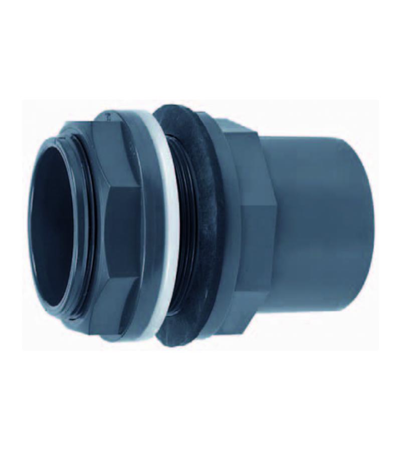 PVC tankdoorvoer voorzien van buitenschroefdraad en dichtingsrubbers.