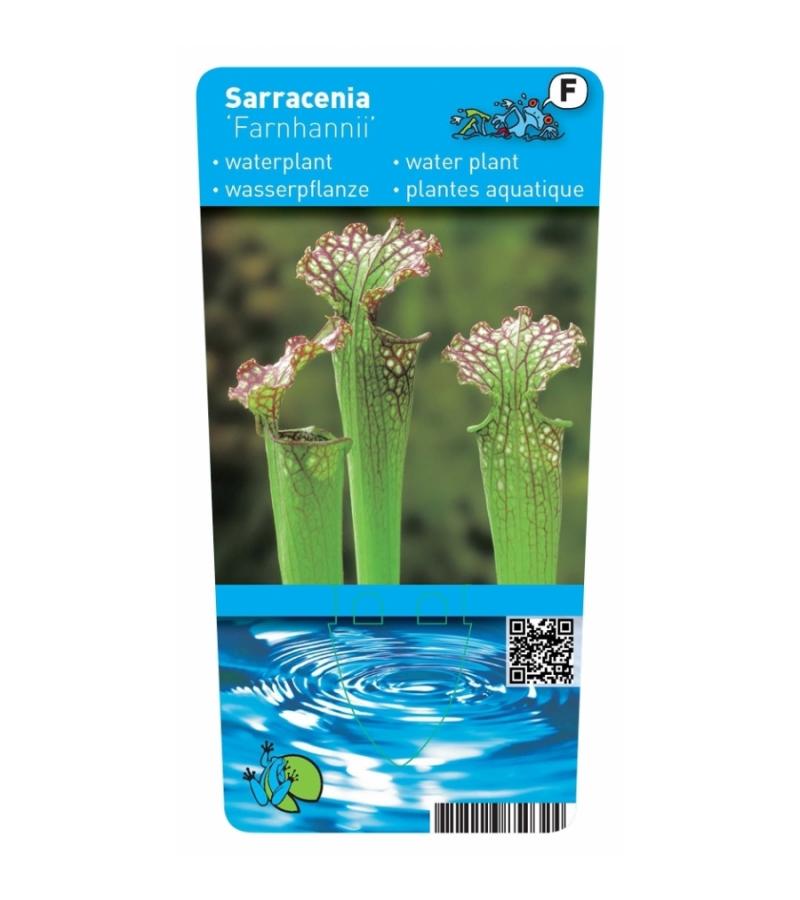 De Amerikaanse bekerplant is ook wel bekend als een vleesetende plant. Hoewel dat erg spannend klinkt, valt dat gelukkig mee. De plant lokt insecten door middel van een aantrekkelijke geur en nectar. De kokerrand is glibberig waardoor de insecten in de trechtervormige buis vallen en door haartjes aan de binnenzijde niet meer kunnen ontsnappen. Vroeger dacht men nog dat kikkers de buizen gebruikte om hun voedsel te verzamelen, tegenwoordig weet men dus het echte verhaal achter de bekerplant. De farnhamii heeft groene, trechtervormige buiten die bovenaan rood geaderd zijn. De plant vormt een prachtig geheel met enkele andere moerasplanten van verschillende hoogtes in een vijvermand.