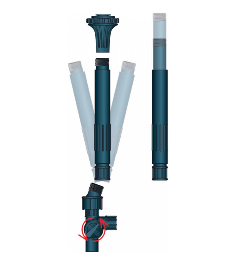 Inclusief 3 verschillende sproeikoppen, telescoopsteel en slangverbinder