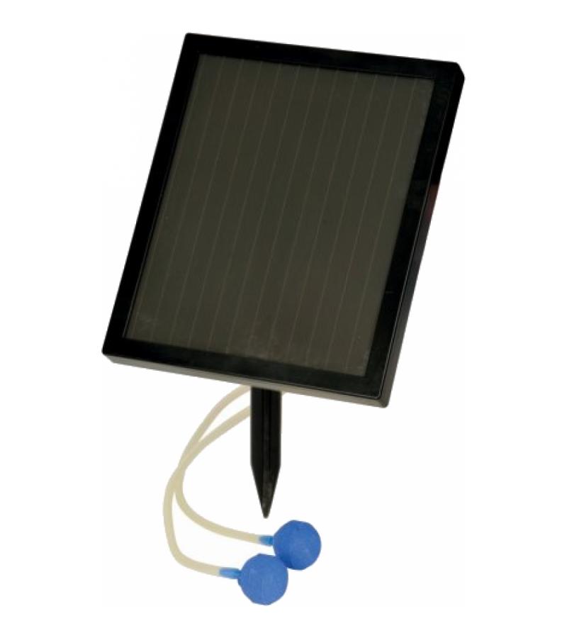Deze Solar luchtpomp is een beluchtingspomp op zonne-energie. De energie wordt vekregen middels een afzondelijk zonnepaneel. Deze bijzondere luchtpomp zorgt voor de toevoeging van zuurstof in uw vijver, waardoor de kwaliteit van het water vebeterd wordt. Het zonnepaneel is gemakkelijk middels een grondpen in de tuin te plaatsen. Richt het zonnepaneel altijd richting de zon voor een optimaal rendement. De solar luchtpomp wordt inclusief toevoerslang, terugslagventielen en twee luchtstenen geleverd. Hou uw vijver helder, zuurstofrijk en gezond met deze handige Solar luchtpomp!