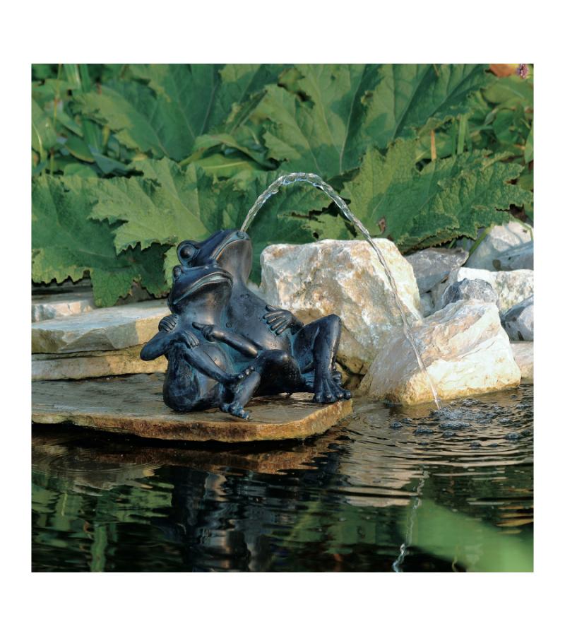 Het kikkers spuitfiguur is een leuke en speelse accessoire bij uw tuin. De twee kikkers staan leuk aan de rand van iedere vijver en brengen door het stromende water een speelse sfeer met zich mee. Door het spuitfiguur ontstaat er meer leven in de vijver en blijft het water constant in beweging. Het ornament is gemaakt van polyresin waardoor het spuitfiguur lange tijd mee zal gaan. Polyresin is een kunsthars welke bestand is tegen alle weersinvloeden. Door dit materiaal is het spuitfiguur licht van gewicht waardoor hij gemakkelijk geplaatst kan worden.