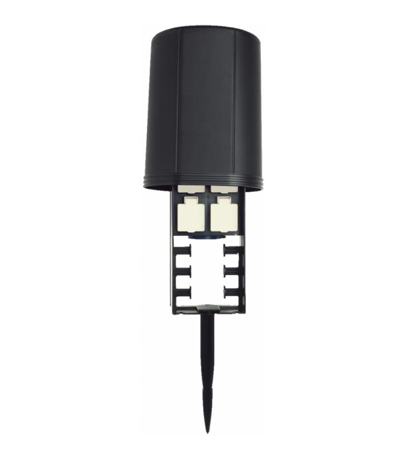 De InScenio 230 is een 4-voudige stekkerdoos voor de tuin, waarmee desgewenst later op voordelige en eenvoudige wijze een 230 V-ringschakeling kan worden gerealiseerd. De stekkerdoos is voorzien van trekontlasting voor bescherming tegen mechanische belasting en beschikt over een afdekking voor bescherming tegen spatwater. Zonder zorgen kunt u de stekkerdoos veilig het hele jaar door gebruiken. Bij de levering is een grondpen inbegrepen waardoor u de InScenio 230 eenvoudig en veilig kan installeren in de grond.