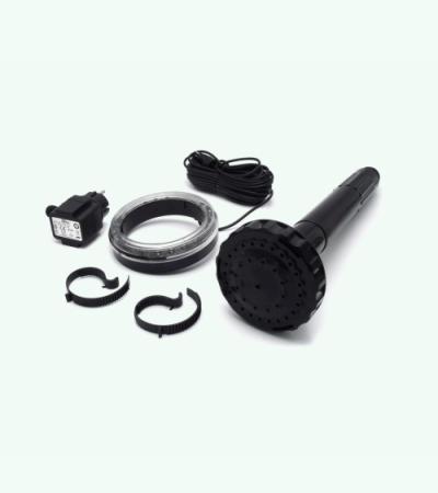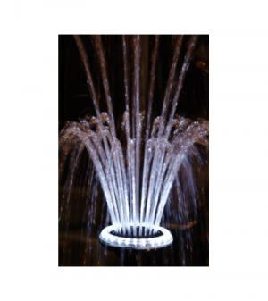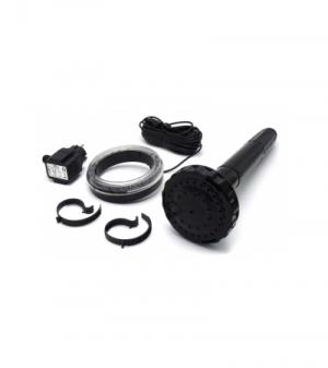 De Jet Vulcano is een sproeikop voorzien van diverse ledlampjes. De 24 verschillende ledlampjes hebben ieder een vermogen van 0,2 Watt. De lampjes voldoen aan de Europese veiligheidsrichtlijnen, zijn energiezuinig en zeer duurzaam. De telescopische verlengbuis kunt u in hoogte verstellen van 28 tot 48 cm. De sproeikop heeft een aansluiting van 1'' buitenschroefdraad en wordt geleverd inclusief veiligheidstransformator en een kabel met een lengte van 10 meter. Voor de sproeikop wordt de fonteinpomp Elimax 4000-9000 l/h van Ubbink aangeraden, deze is niet inbegrepen.