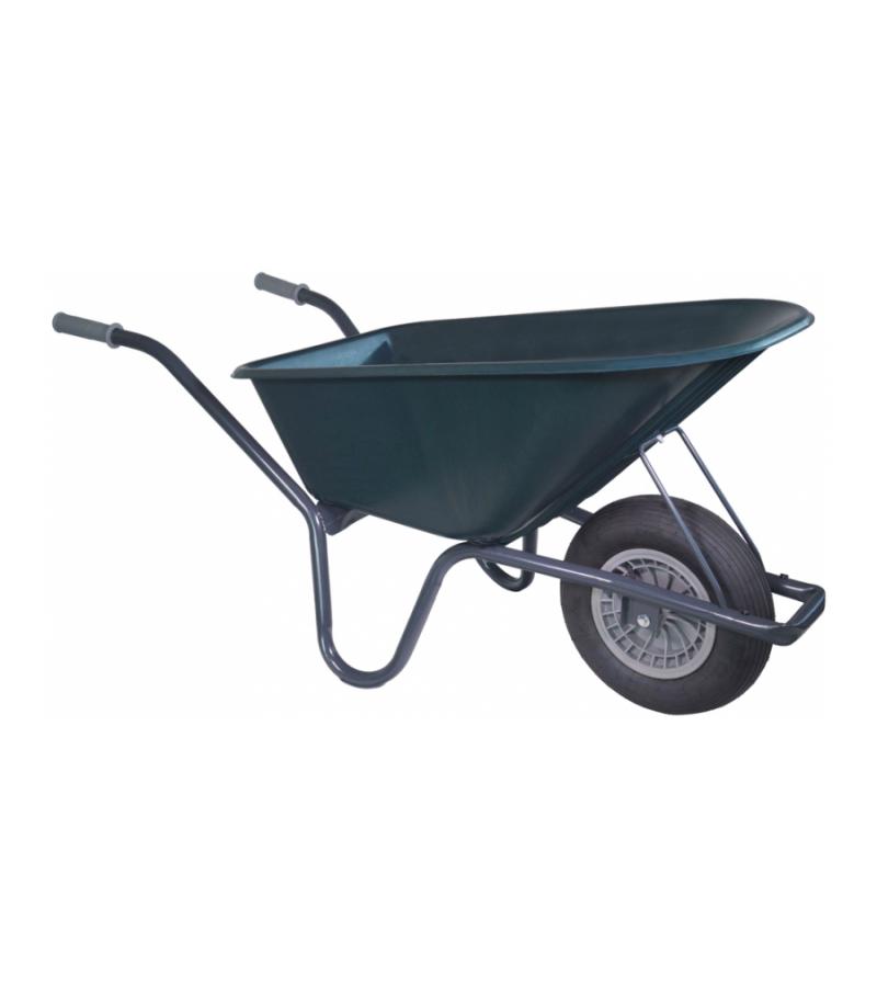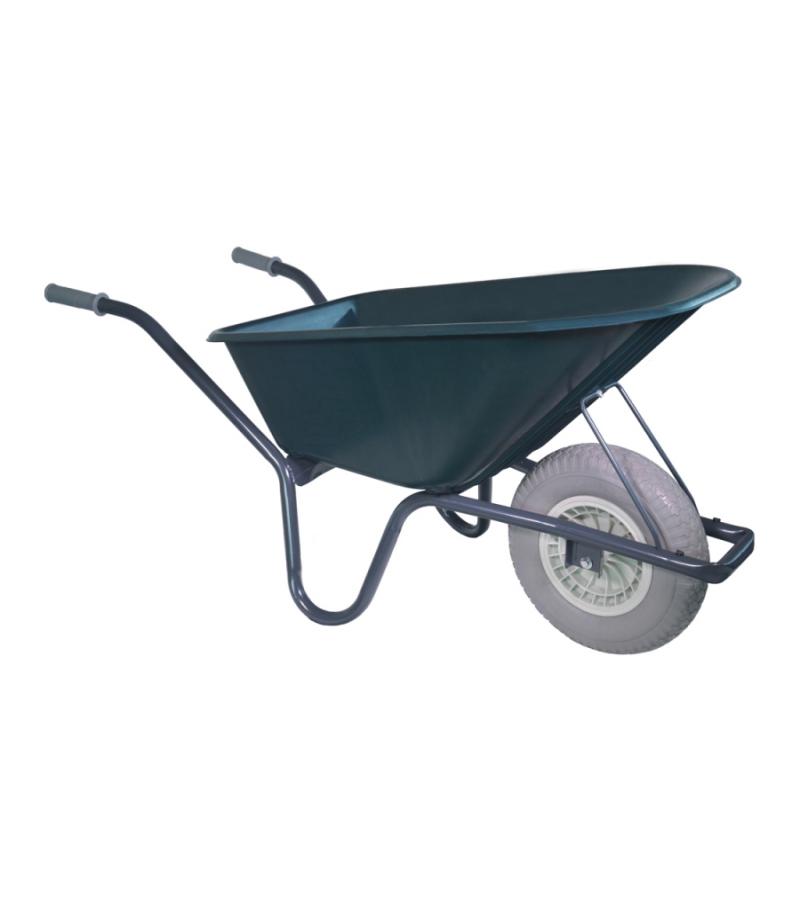 Deze kruiwagen, bestaande uit een polypropyleen groene lichtgewicht bak, is een zeer handige tool voor klusjes rondom het huis. Door de 100 liter inhoud is de kruiwagen zowel geschikt voor zwaar als licht werk. Het frame bestaat uit ronde buizen, met een grijs lak laagje.