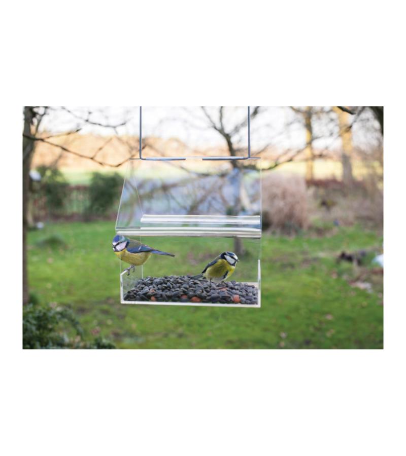 Wanneer u de vogels voer geeft, is het natuurlijk leuk wanneer u ook kunt genieten van het vogelverkeer in uw tuin. De transparante vogelhuisjes zorgen voor 100% beleving vanuit uw warme woonkamer. U vult het vogelvoederhuisje met zaden of fruit, hangt het huisje op en geniet vervolgens eerste rang van het vrolijke schouwspel in uw tuin.