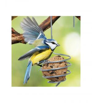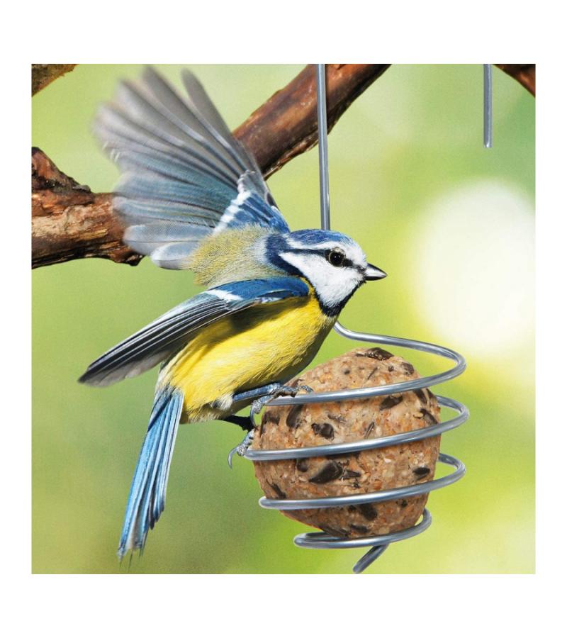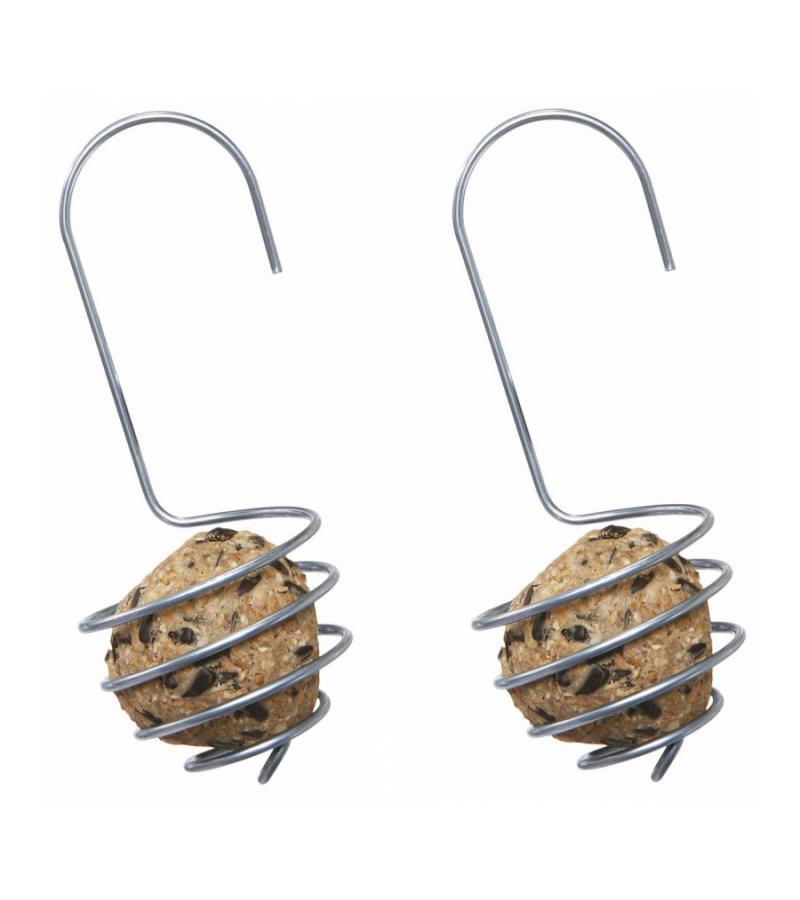 Set van twee verzinkte vetbolhouders. Een simpel, maar doeltreffend ontwerp waar kleine vogels zeker gebruik van zullen maken. Deze metaalhouders kennen meerdere voordelen. Een voordeel van deze metalen spiraalhouders is je er een vetbal in kan plaatsen welke niet in plastic verpakt zit en zo het gebruik van plastic verminderd en de spiraal ieder seizoen kan hergebruiken. Een ander voordeel is de veiligheid van vogels. Door geen plastic netje te gebruiken, voorkom je dat vogeltjes met hun pootjes vast komen te zitten in het netje.