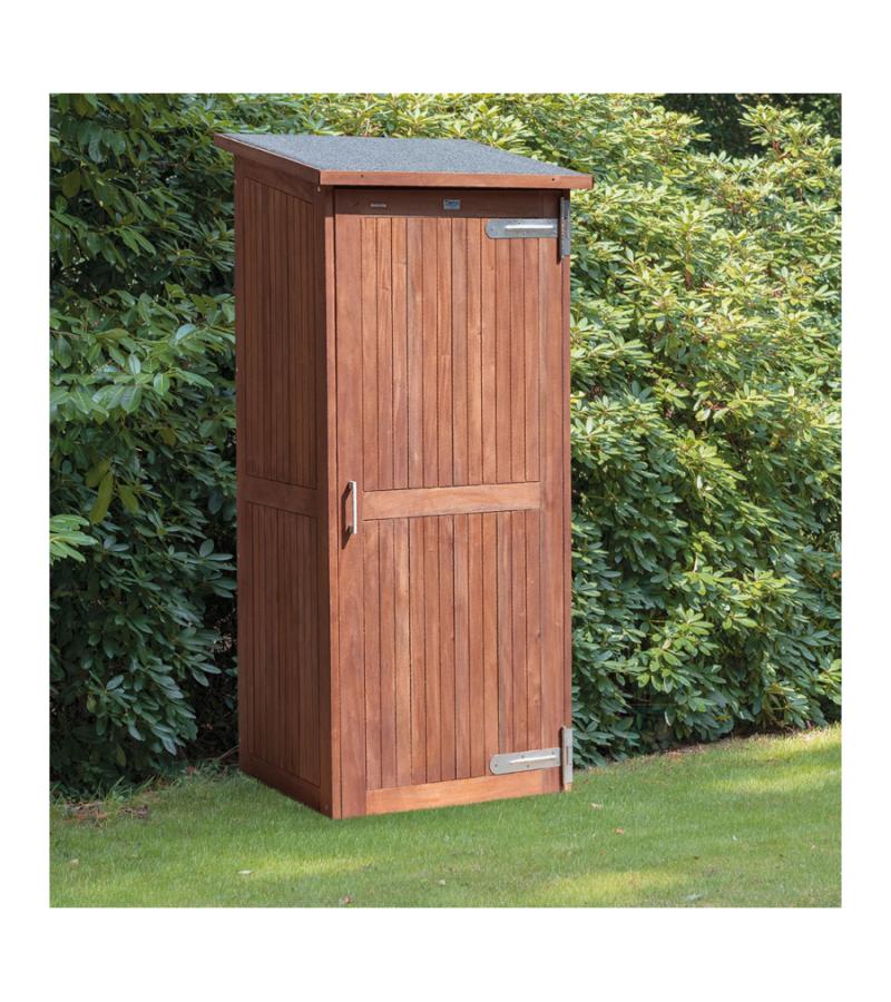 De prachtige hardhouten tuinkast Santiago heeft een mooie warme uitstraling door de geoliede hardhouten uitvoering. Het compacte formaat maakt de tuinkast geschikt voor elke tuin. Het dak van de tuinkast is voorzien van dakleer.