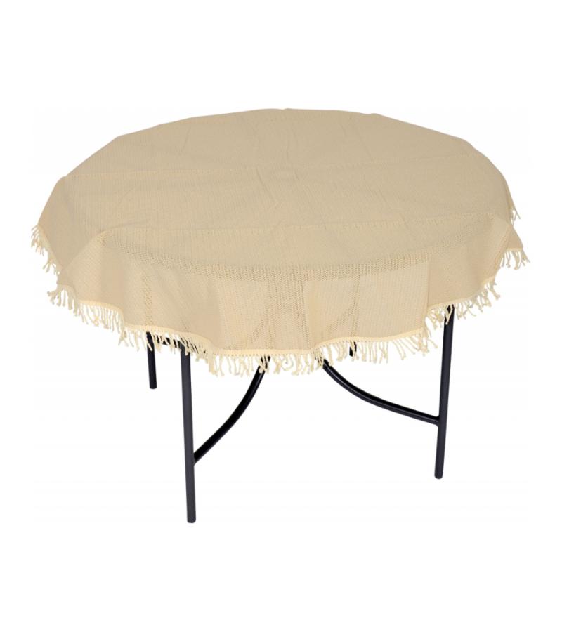 Uw nieuwe tuintafel wilt u uiteraard beschermen zodat hij langer mooi blijft. Dat kunt u doen met een tafelkleed. Dit ronde tafelkleed heeft een doorsnee van Ø160cm. Het tafelkleed is beige van kleur en is afgewerkt met zwarte franjes. Om het tafelkleed mooi te houden is het belangrijk het tafelkleed na gebruik op te bergen.