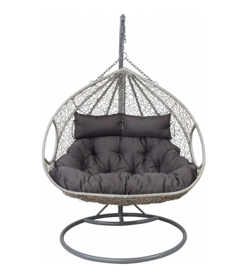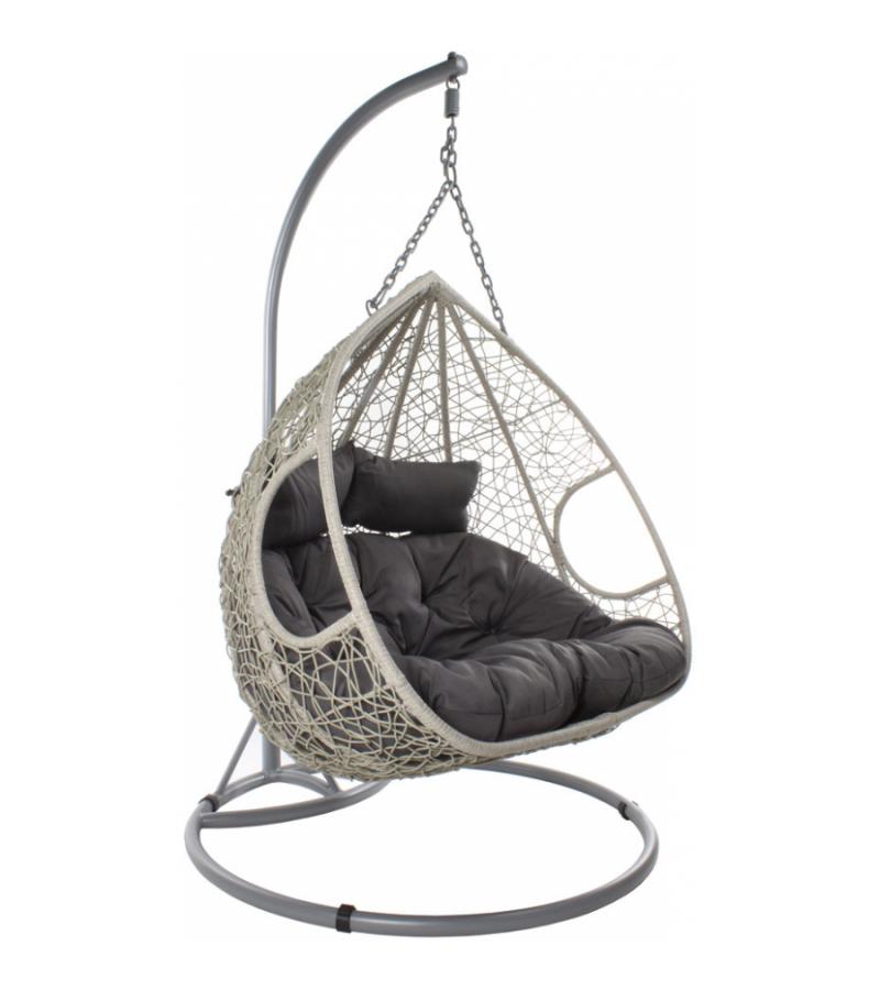 Deze indrukwekkende hangstoel bewijst dat een stoel niet altijd op de grond hoeft te staan. De stoel is bevestigd aan een standaard zodat u deze niet meer zelf aan het plafond hoeft te bevestigen maar dat u toch van de voordelen van een hangstoel kunt genieten. De ronde vorm van de hangstoel in combinatie met de comfortabele kussens zorgen voor een ultiem comfort waar u optimaal kunt ontspannen. De hangstoel biedt plaats aan twee personen, zo kunt u heerlijk samen genieten!