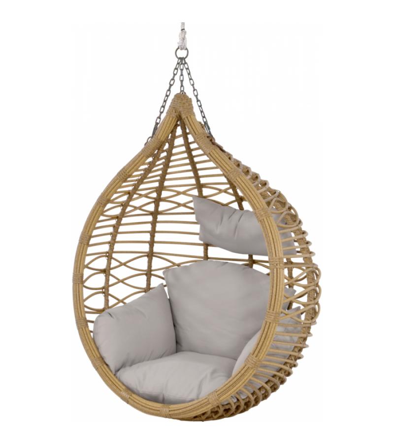 Hangstoelen zijn dé trend van het moment! Al zachtjes schommelend relaxen met een boekje, een drankje en even ontsnappen uit alle drukte van alledag. Deze hangstoel wordt geleverd zonder frame en is dus ideaal voor de veranda, pergola of binnenshuis wanneer hier een haak bevestigd kan worden. De hangstoel is van het onderhoudsvrije wicker gemaakt in lichte tinten waardoor het prachtig bij alle houtkleuren combineert. De beige kussens zijn heerlijk dik en comfortabel. Vergeet even alles om u heen met deze Amazona hangstoel!