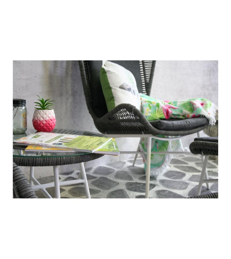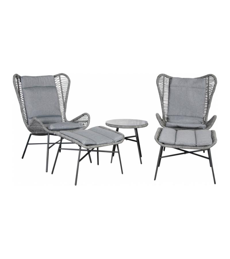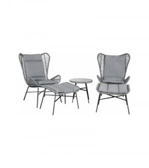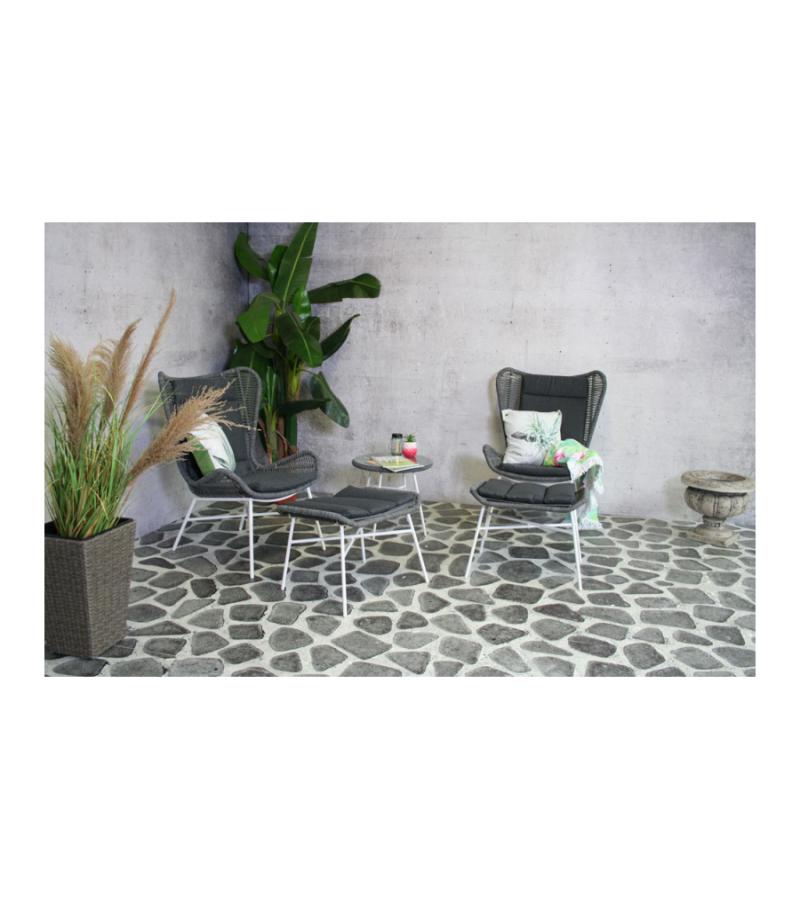 • Set bestaande uit 2 stoelen, 2 voetenbanken en 1 bijzettafeltje