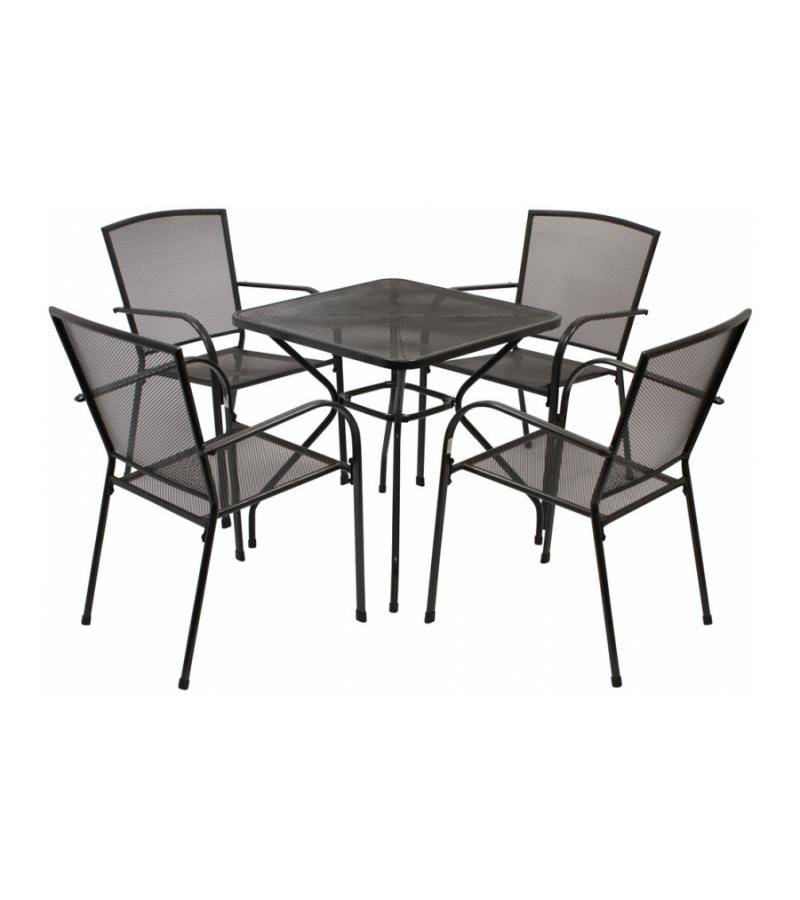• Set bestaande uit 4 stapelbare stoelen en vierkante tafel
