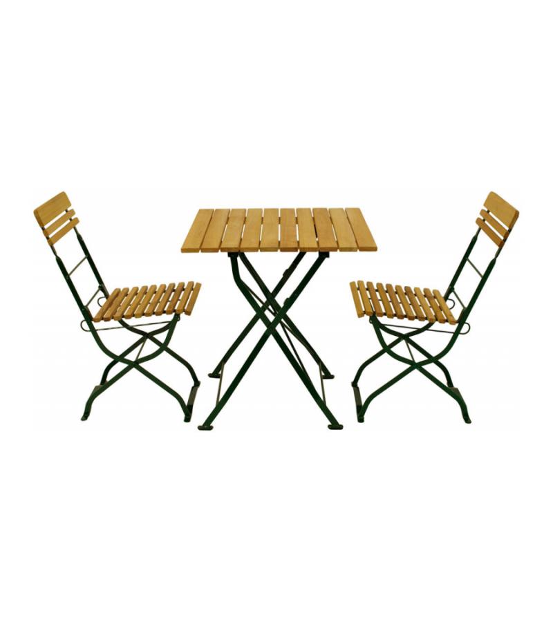 Deze Hardhouten Bistroset 70 x 70 cm met groen metalen frame wordt gekenmerkt door zijn klassieke uiterlijk. De poten en het onderstel zijn van verzinkt staal met een donkergroene coating. Het tafelblad, de zitting en rugleuning zijn van Europees hardhout. De zitting van de stoelen is iets afgerond voor extra zitcomfort. De set is makkelijk inklapbaar en daardoor gemakkelijk op te bergen tijdens de koudere maanden.