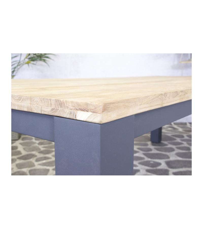 Deze rechthoekige SenS-Line Tuintafel Boston 240 x 100 cm is extra lang en is voorzien van een vierdelig blad van gerecyled teakhout. Het frame met vierkante poten is van lichtgewicht aluminium met een donkere matte poedercoating.