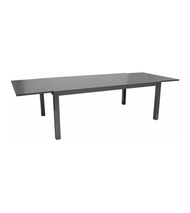 Uitschuifbare tuintafel met glazen blad 180/240 grijs