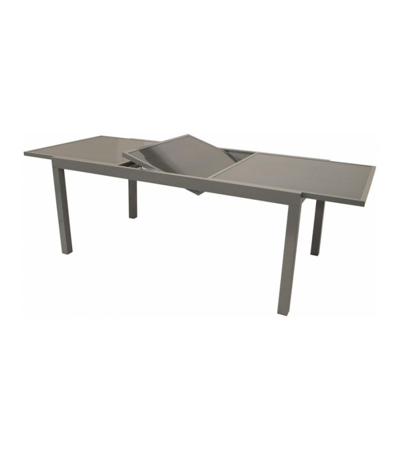 Uitschuifbare Tuintafel met glazen tafelblad 180/240 grijs