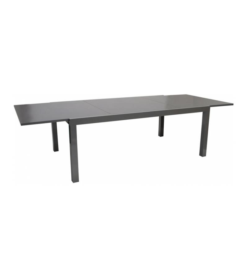 De Uitschuifbare tuintafel met glazen blad 200/300 grijs heeft een aluminium frame en het tafelblad is donker bedrukt glas. Dankzij het speciale ontwerp kan deze tuintafel worden verlengd wanneer je extra gasten verwacht, van 200 cm tot maar liefst 300 cm.