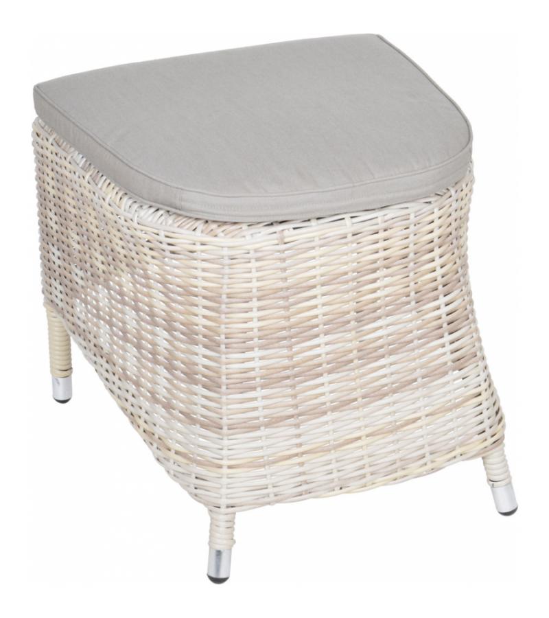Optimaal genieten met uw voeten omhoog wordt voortaan vanzelf sprekend met dit voetenbankje Soho Beach. Dit voetenbankje is goed te combineren met de Tuinstoel Soho Beach. Het frame van het voetenbankje is aluminium met en 6,5 x 3,3 mm half rond wicker. Wicker is een kunststof die 100% weersbestendig, onderhoudsvriendelijk en kleurecht is. Hierdoor gaat het voetenbankje jaren mee en hoeft u er nauwelijks onderhoud aan uit te voeren. Een groot voordeel van het materiaal is dat het erg licht is, het voetbankje kan dus heel eenvoudig verplaatst worden.