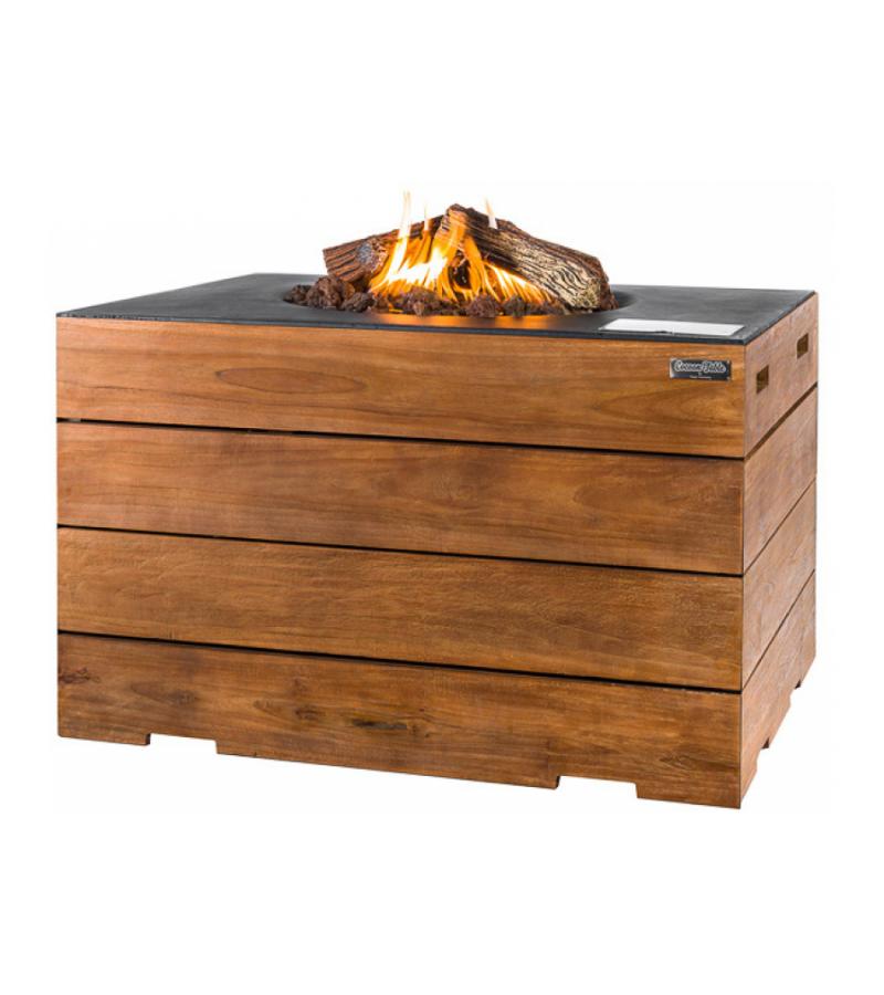 De Cocoon haard is vervaardigd uit duurzaam teakhout en afgewerkt met een zwart bovenblad. Het materiaal teakhout is goud-bruine van kleur, heeft een lange levensduur en maar weinig tot geen onderhoud nodig. Teakhout kan bijna alle weersomstandigheden weerstaan waardoor u de vuurtafel het hele jaar door buiten kunt laten staan. Afdekken na gebruik en bescherming tegen weersinvloeden door middel van een beschermhoes wordt wel aangeraden.