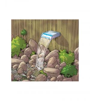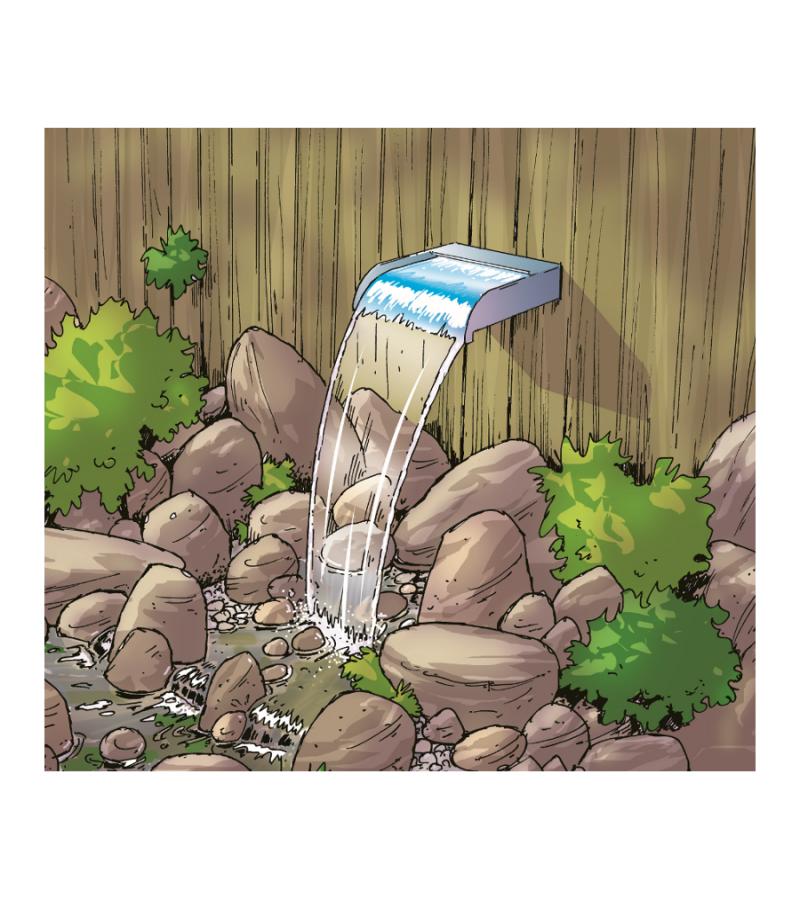 De Nevada waterval is een modern vormgegeven watervalelement die, in combinatie met de juiste vijverpomp, een brede waterpartij creëert. Het water vloeit geruisloos terug in de vijver of het waterreservoir en heeft een rustgevende uitstraling. De Nevada is gemaakt van roestvrij staal met een hoogwaardige kwaliteit en voorzien van twee aansluitmogelijkheden. De aansluitmogelijkheden bevinden zich aan de achter- of onderkant en zijn voorzien van een 1'' binnendraad en 25 mm slangaansluiting. De Nevada waterval wordt geleverd inclusief schroeven en pluggen.