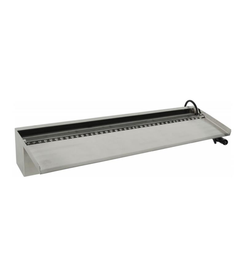 De Niagara 90 rvs muur waterval LED is dankzij de lange uitloop vooral geschikt voor muurwanden, steenkorven (gabionen) of andere materialen. De Niaga waterval is een aanwinst voor iedere tuin door zijn sierlijke en moderne design. Niet alleen overdag zorgt de waterval voor een bijzondere, en levendige sfeer in uw tuin. Ook in de avonduren kunt u genieten van de prachtige accessoire door de led verlichting, deze zorgt 's avonds voor een stemmige verlichting. Mocht de led-strook vervangen dienen te worden, hoeft de waterval niet helemaal gedemonteerd te worden. De led-strook is eenvoudig los te maken en te vervangen.