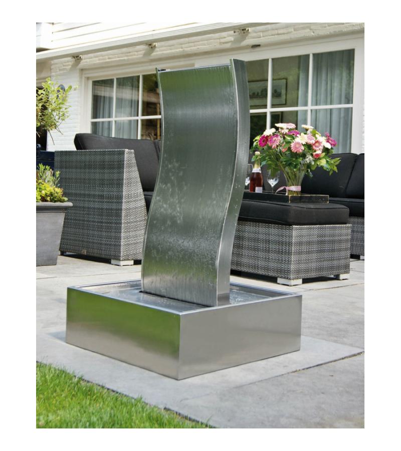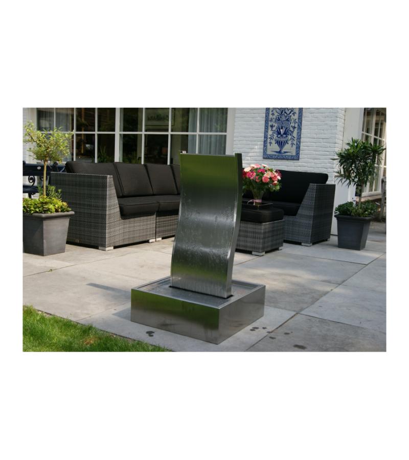 Waterornament Genova is een elegant vormgegeven ornament die wordt gekenmerkt door zijn moderne uitstraling, exclusiviteit en bijzonderheid! De golvende vorm zorgt in combinatie met stromend water constant voor nieuwe, levendige lichteffecten. De combinatie van hoogwaardige materialen, strakke vorm en het element water geeft deze complete set een fascinerende uitstraling in jouw tuin, terras of interieur!