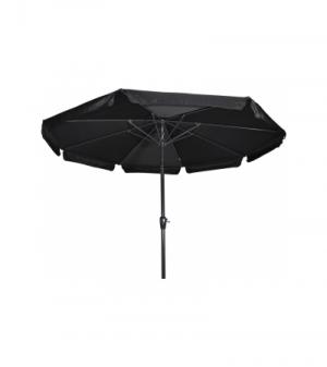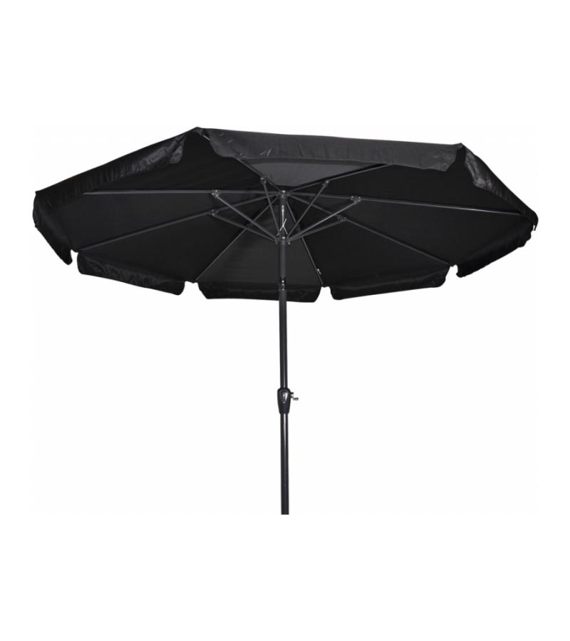 Gebruik deze prachtige stokparasol Libra 300 cm zwart om een koel plekje in uw tuin of op uw terras te creëren. De parasol heeft een diameter van drie meter waardoor hij voor een groot schaduwoppervlak zorgt, tevens zorgt de volan ervoor dat u geen last heeft van de laagstaande ochtend of avondzon. Verder is de parasol knikbaar waardoor u hem altijd naar de zon toe kunt knikken, zo bent u altijd verzekerd van een aangename schaduwplek.