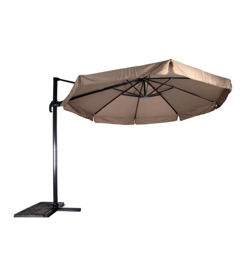 De zweefparasol Virgo heeft een mooie, taupe kleur en een antracietkleurig frame, deze kleurencombinatie maakt de parasol gemakkelijk te combineren met uw tuinmeubilair. Mocht u toch liever een andere kleur parasol willen is dit geen probleem, de zweefparasol Virgo 350 cm is ook verkrijgbaar in de kleuren ecru en grijs. Voor iedere tuin is de perfecte zweefparasol verkrijgbaar!