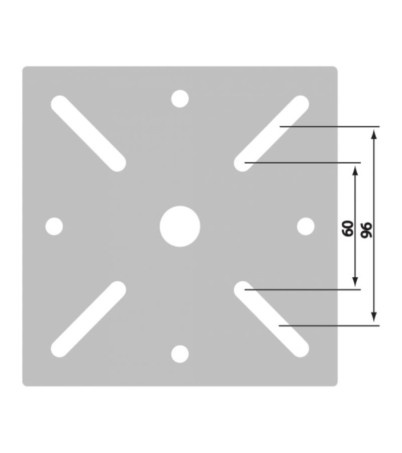 Adapterplaat voor gebruik met de Terra Easyfoot onzichtbare parasolvoet. De standaard hart op hart maat van de montageplaat van de Terray Easyfoot parasolvoet is 112 mm. Echter doordat niet iedere parasolleverancier dezelfde gatenpatronen gebruikt voor de montage van hun parasol, kan het voorkomen dat de montagegaten van uw parasol afwijken van die van de standaard montageplaat. In dit geval kunt u gebruik maken van deze adapterplaat. De adapterplaat is geschikt voor parasols met een hart op hart maat van 60 mm tot 115 mm.
