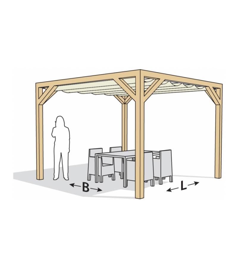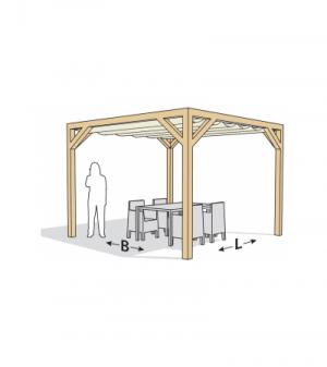 Vrijstaande pergola hout 2.9x3 meter met zwart kleurig harmonicadoek