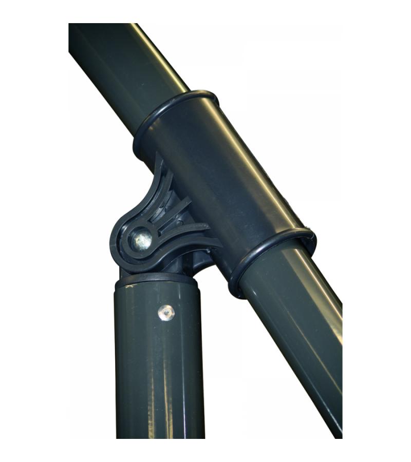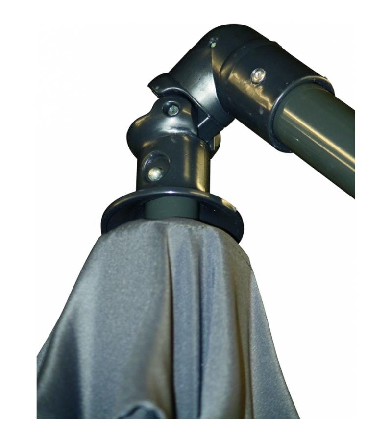 Met een zweefparasol kunt u onbelemmerd genieten van het warme weer en uw uitzicht zonder dat u last heeft van een parasolstok in het midden van uw terras. Met een zweefparasol kunt u de ruimte op het terras optimaal benutten. De parasol is eenvoudig open en dicht te klappen middels de molen op de stalen behuizing en is zeer stevig door het aluminium frame en de acht metalen baleinen. De parasol wordt geleverd inclusief een stevige kruisvoet, deze moet nog wel verstevigd worden met twee of vier (parasolvoet-) tegels.