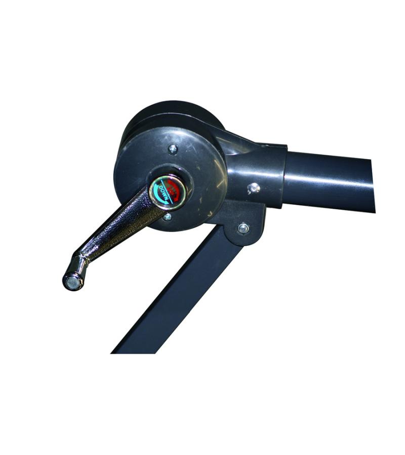 Voorzien van handige molen, voor het eenvoudig uit- en inklappen van de parasol
