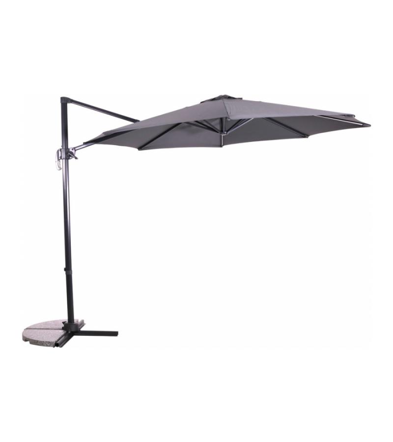 U wilt geen parasolstok in het midden van uw terras? Dan is de zweefparasol de ideale oplossing! Met de zweefparasol Libra met een diameter van drie meter creëert u een koel plekje in uw tuin of op uw terras zonder hinderlijke parasolstok. Door het grote parasoldoek creëert de parasol voldoende schaduw voor de hele lounge- of diningset waardoor u met uw hele gezelschap kunt relaxen in de schaduw. Doordat de Libra parasol is voorzien van een handige molen, is deze gemakkelijk in- en uit te klappen. Met een voet die 360 graden draaibaar is bent u altijd voorzien van een schaduwplaats.