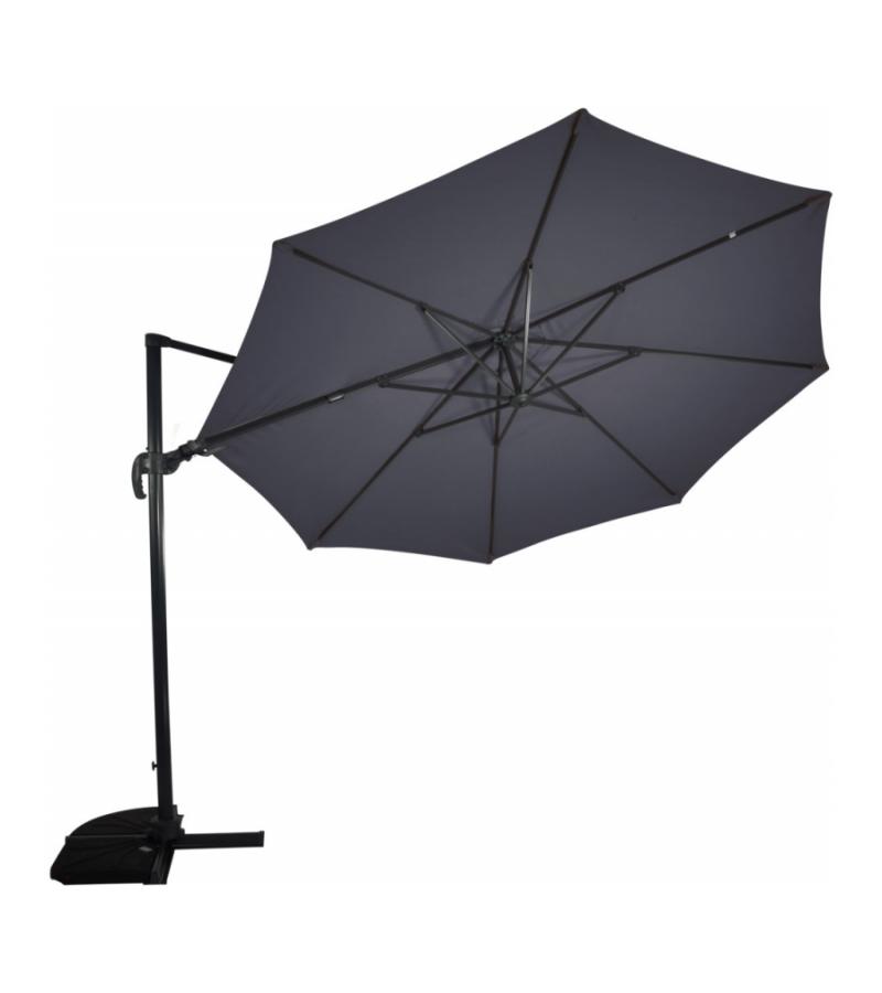 Het grootste voordeel van een zweefparasol is dat u geen last meer heeft van een parasolstok op het midden van het terras. U kunt de parasol eenvoudig boven uw eetset plaatsen zonder dat uw tafel voorzien moet zijn van een parasolgat. Ook kunt u zo alle ruimte optimaal benutten op het terras. De zweefparasol VirgoFlex heeft een grijs doek en krijgt hierdoor een stijlvolle uitstraling. De VirgoFlex is ook verkrijgbaar in de kleuren ecru en taupe. Geniet optimaal van de warme zomerdagen onder deze prachtige zweefparasol VirgoFlex 350 cm grijs.