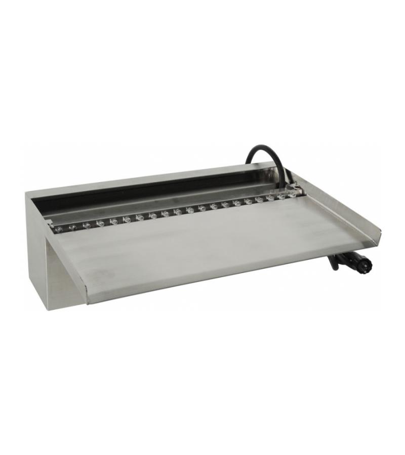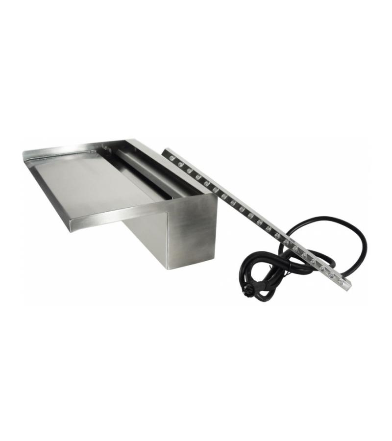De Niagara 30 rvs muur waterval LED is dankzij de langere uitloop vooral geschikt voor muurwanden, steenkorven (gabionen) of andere materialen. Ook blijft de installatie aan de voorwand mogelijk. De waterval is voorzien van twee aansluitmogelijkheden aan de onderkant en de achterkant zodat u hem zowel aan een muur kan bevestigen, inmetselen in een muur of als losstaand element bij uw vijver kunt plaatsen. De Niagara 30 rvs waterval is voorzien van prachtige ledverlichting welke 's avonds voor een stemmige verlichting zorgen. Wanneer de led-strook vervangen dient te worden, hoeft u de waterval niet te demonteren. De led-strook kan heel gemakkelijk losgemaakt en vervangen worden.