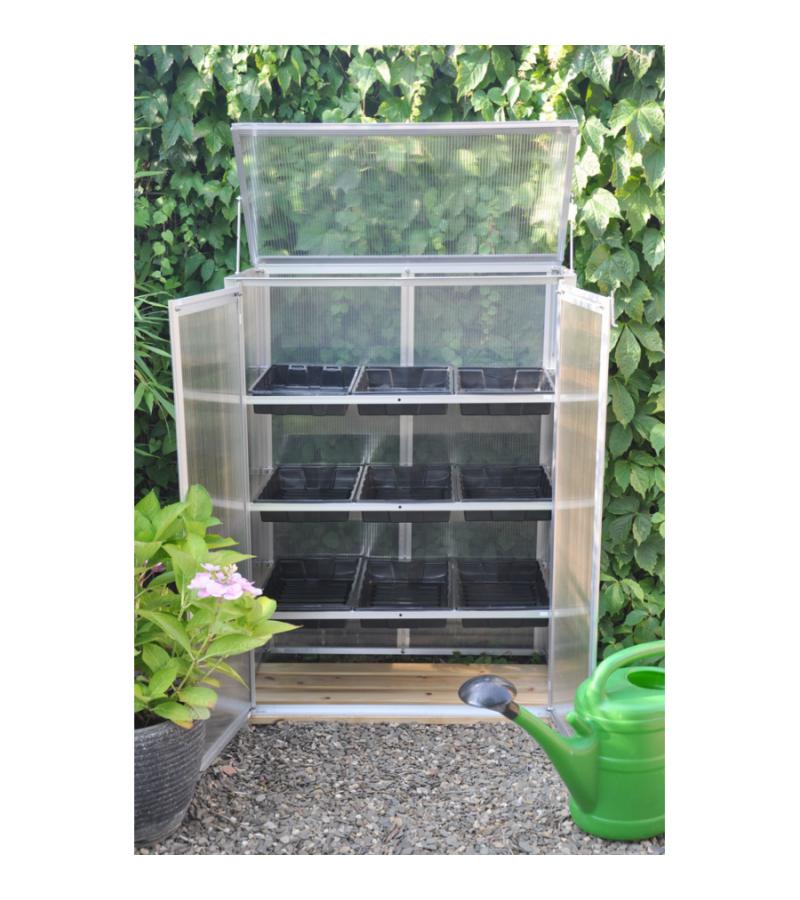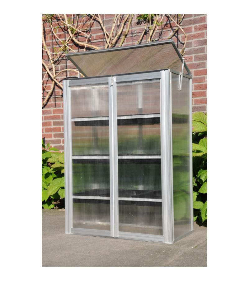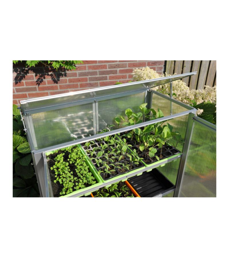 De Grow Station kweekkas is uitermate geschikt voor het (voor)zaaien en (op)kweken van jonge gewassen. Het 4 mm dikke polycarbonaat heeft een isolerende werking en zorgt voor diffuus groeilicht. De kweekkas is voorzien van een dichte achterwand, twee draaideuren en een klep voor de nodige beluchting. Via de twee draaideuren kunt u altijd gemakkelijk bij uw gewassen komen en ook kunnen de draaideuren gebruikt worden als extra ventilatiemiddel. De klep is in te stellen op verschillende standen zodat er frisse lucht bij uw plantjes kan komen. Vooral in de zomermaanden, wanneer de temperatuur hoog oploopt in de kas, is het belangrijk dat er voldoende frisse lucht de kas in komt. Bovendien is de beluchting zeer belangrijk om de luchtvochtigheid op pijl te houden.
