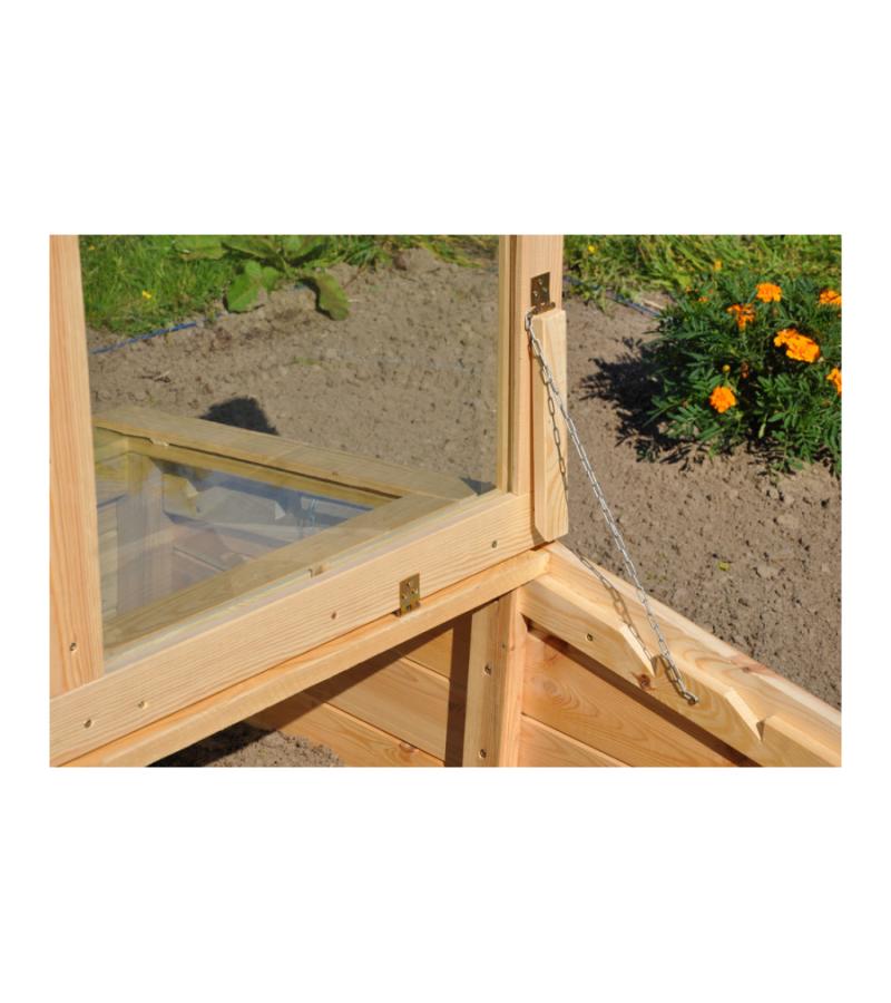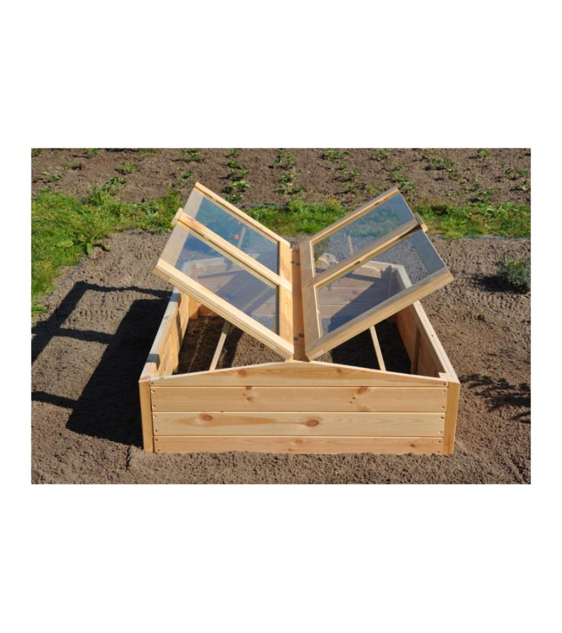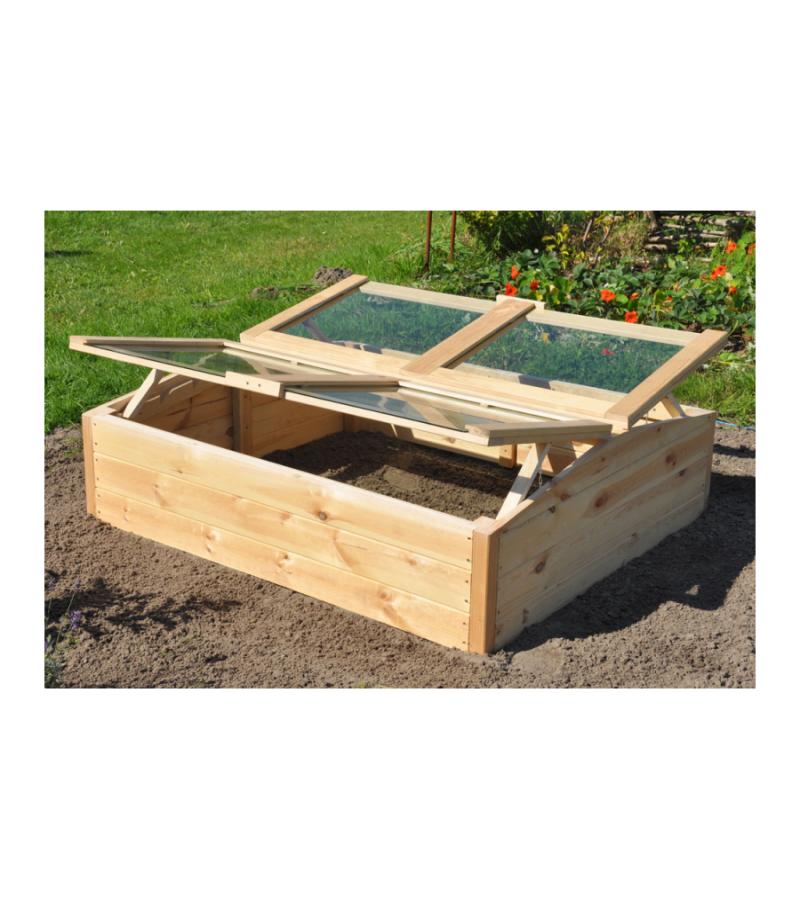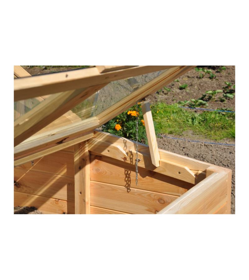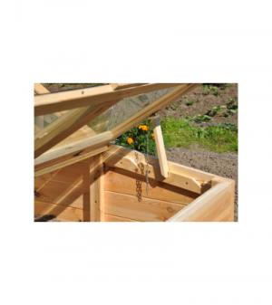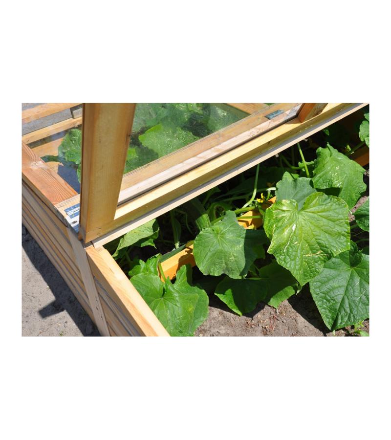 Vurenhouten kweekkas voor het (vroeg) kweken in de vollegrond. Beschermd het gewas tegen wind, hagel, nachtvorst en ongedierte.