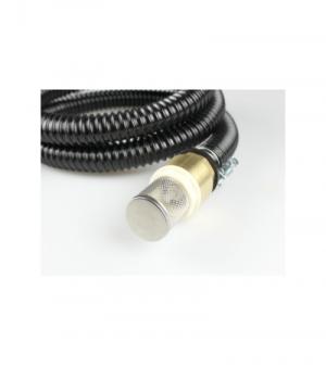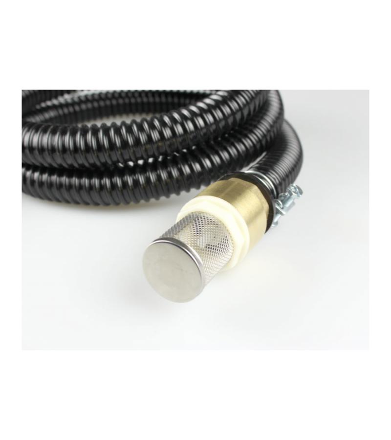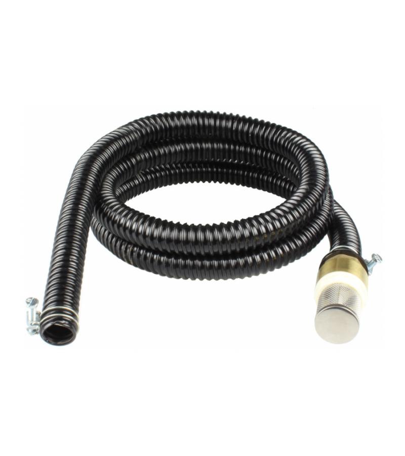 De aanzuigslang heeft een diameter van 25 millimeter en wordt geleverd inclusief twee slangklemmen