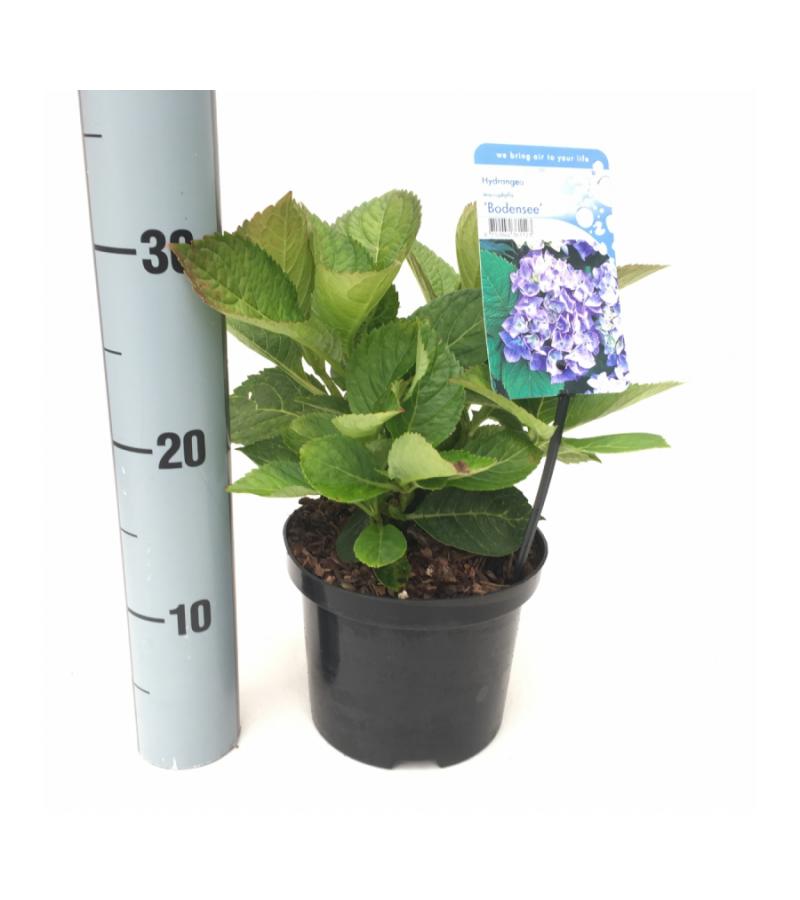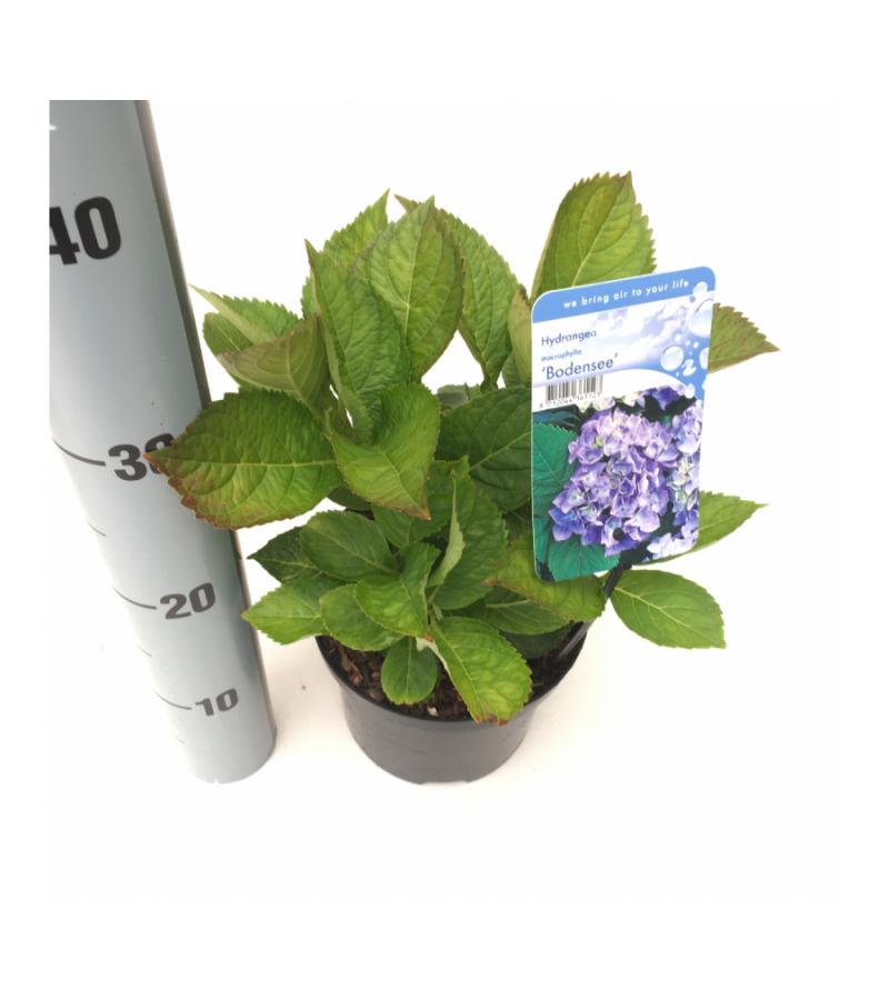 Deze compact groeiende hortensia bloeit met prachtige lichtblauwe of lichtroze bloembollen. De kleur van de bloemen is afhankelijk van de grond van zijn standplaats, de Bodensee is zeer gevoelig voor de zuurtegraad van de grond. De hortensia staat niet graag in de felle middagzon, in de ochtend en namiddag kan hij wel wat zonneschijn verdragen. Een hortensia is een zeer populaire toevoeging aan de tuin, zo ook de Bodensee, een prachtig rijkbloeiende en eenvoudig te combineren boerenhortensia.
